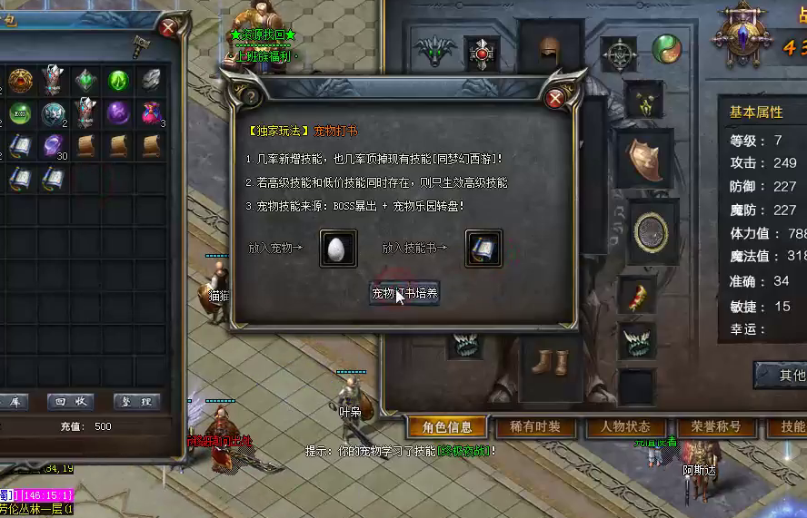 | 正气复古 | 5点 | 可修理 | 特殊NPC修复 | 5万金币/点 |