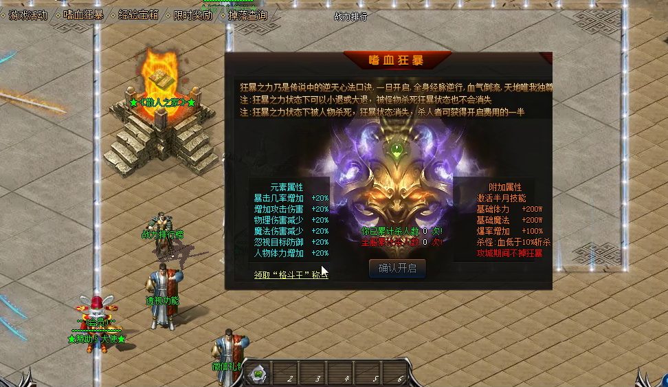 | 怪物攻城 | 每日19:30 | 盟重沙巴克城门激战 | 随机职业鞋子/腰带 |