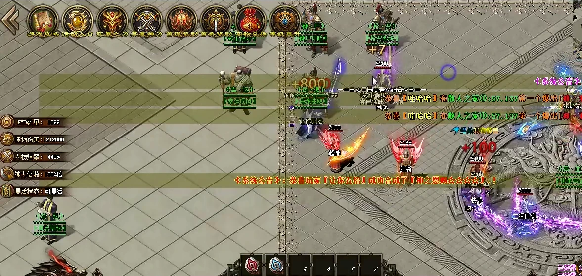 问:1.80合击新区开服有什么特别的活动?我看公告说运2项链爆率高是真的吗?
